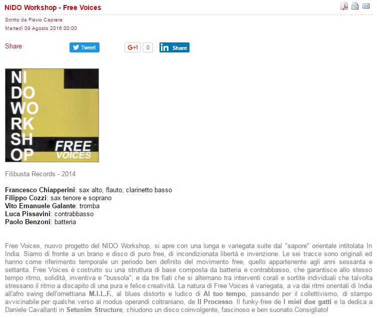 NidoWorkshop – Free Voices – Jazz Convention [ita] Posted on November 6, 2016 by Francesco Chiapperini