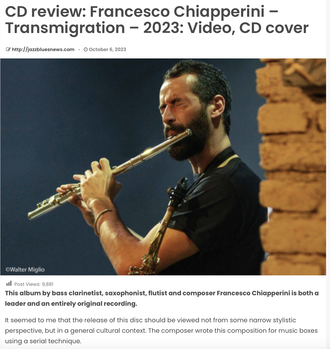 Transmigration – Jazz Blues News [Eng] Posted on October 23, 2023October 23, 2023 by Francesco Chiapperini