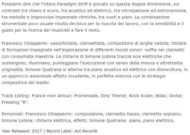 Paradigm Shift – Intervista Giornale della Musica [ita] Posted on March 10, 2017 by Francesco Chiapperini