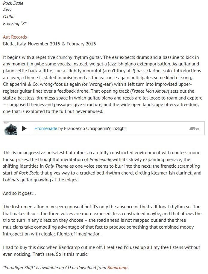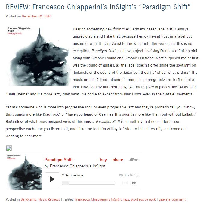InSight – Paradigm Shift – A Jazz Noise [eng] Posted on December 12, 2016December 12, 2016 by Francesco Chiapperini