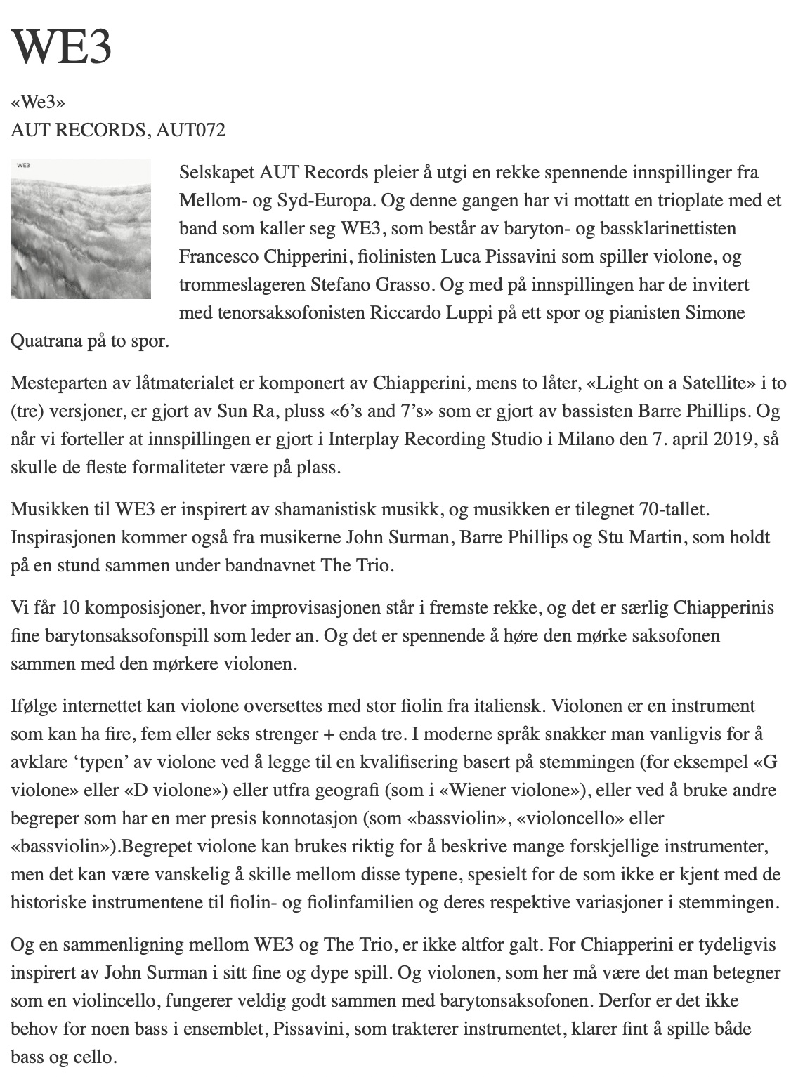 WE3 – All About Jazz [ITA]